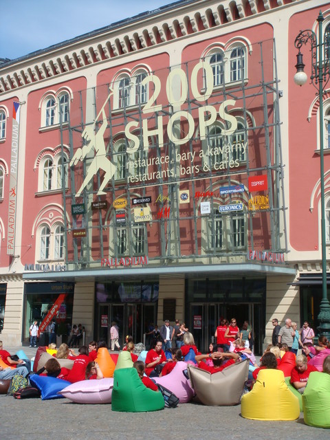 一群人就這樣 提著懶骨頭就在市中心躺了起來