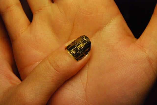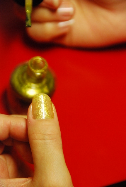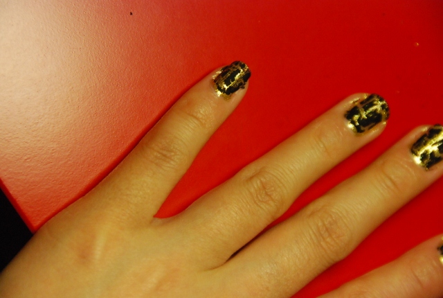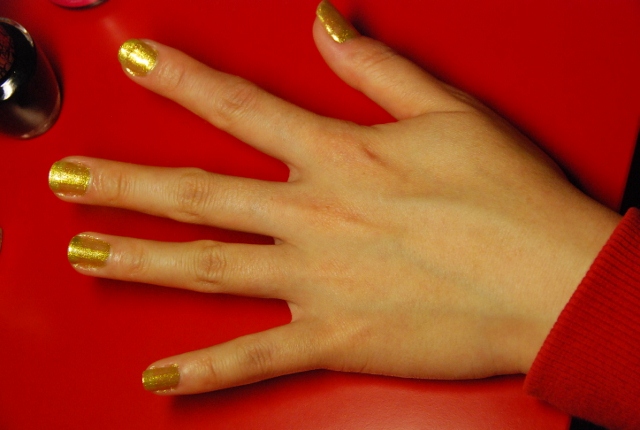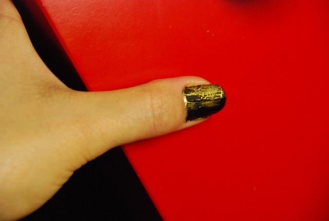 部分的金色指甲油看得出來有稍微的辣ㄘㄚˋ一些