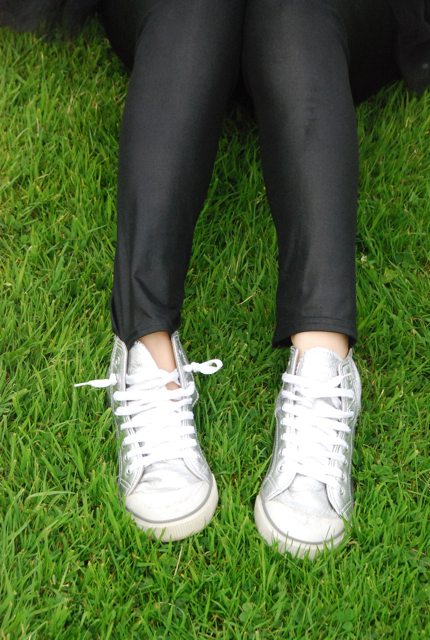 我選擇一條帶有金屬光澤的legging來作為下身的搭配...