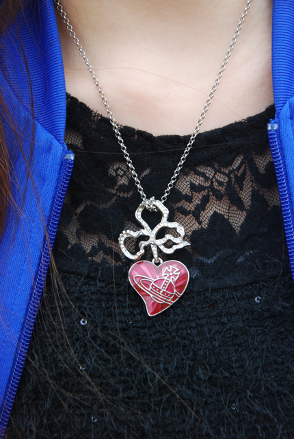 今天我還特別選擇帶有一點點金屬龐克感覺的Vvienne westwood項鏈來作搭配呢....